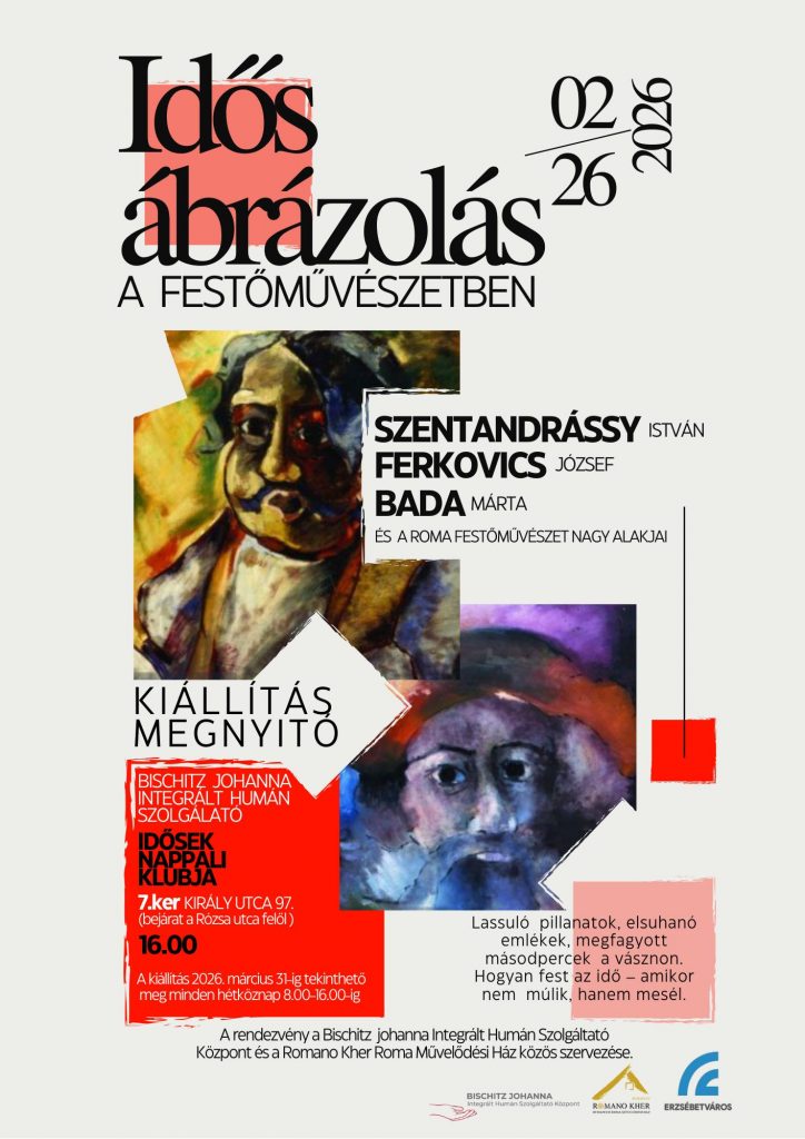 „Idős ábrázolás a festőművészetben” címmel nyílt meg egy különleges kiállítás a Király utcai Nappali klubunkban. A tárlat a Bischitz Johanna Integrált Humán Szolgáltató Központ és a Romano Kher közös szervezésében valósult meg, és jeles roma alkotók műveiből kínál válogatást.